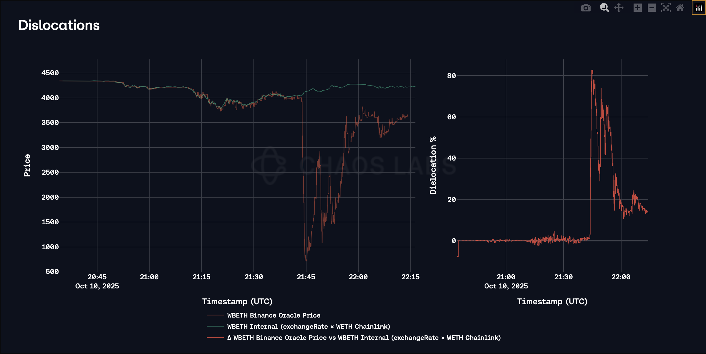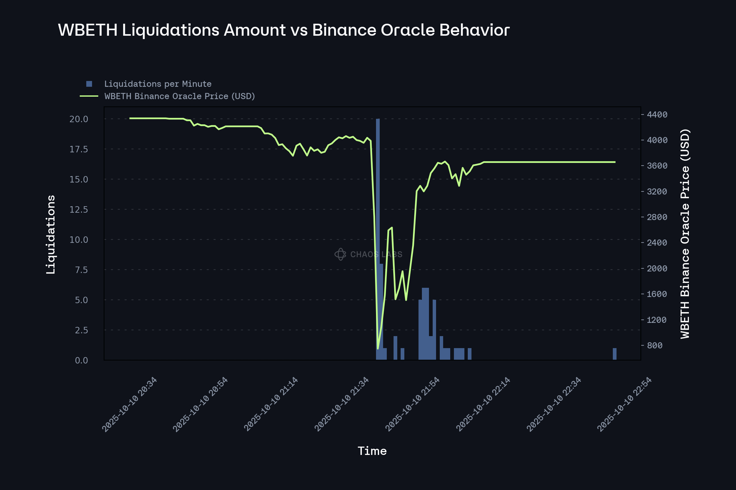 on this contract to post the latest WBETH price with a timestamp. However, between 9:43 PM and 11:30 PM UTC on October 10, 2025, the Binance Oracle experienced a severe depeg, reporting a price far below the actual market value.