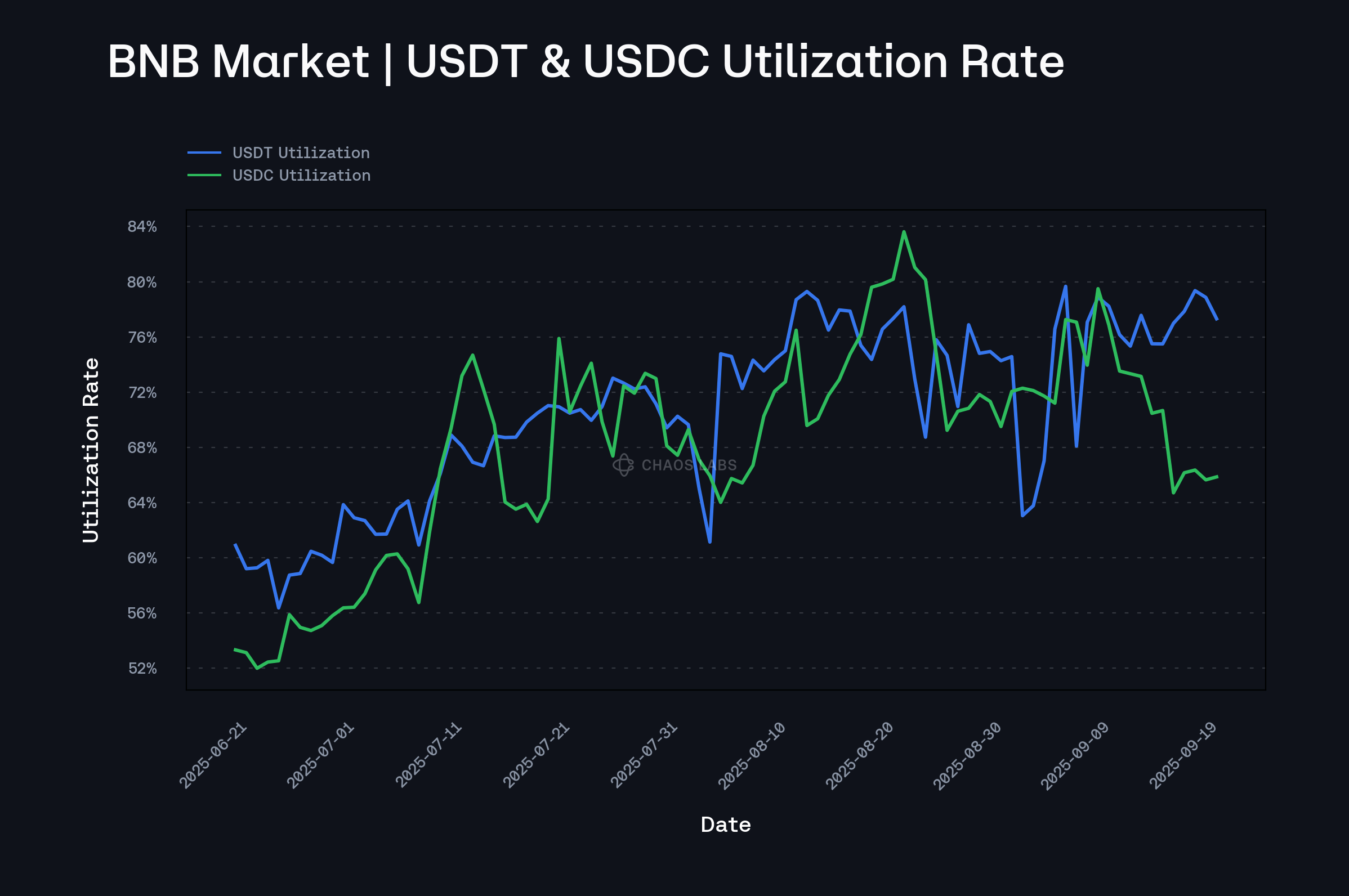 Over the past three months, both the USDT and USDC markets have shown limited momentum, aside from a brief uptick in utilization in late June to early July 2025. USDC utilization remained below 80% for most of the period and experienced a sharp drop in early September, now standing at 65.85%. USDT utilization has generally been higher than USDC’s but also stayed mostly below 80%, with no clear upward trend in the past two months. Given this demand profile, and considering Venus’s adjustments to incentives, we agree that lowering the kink APRs will reduce borrowing costs and support healthier utilization.
