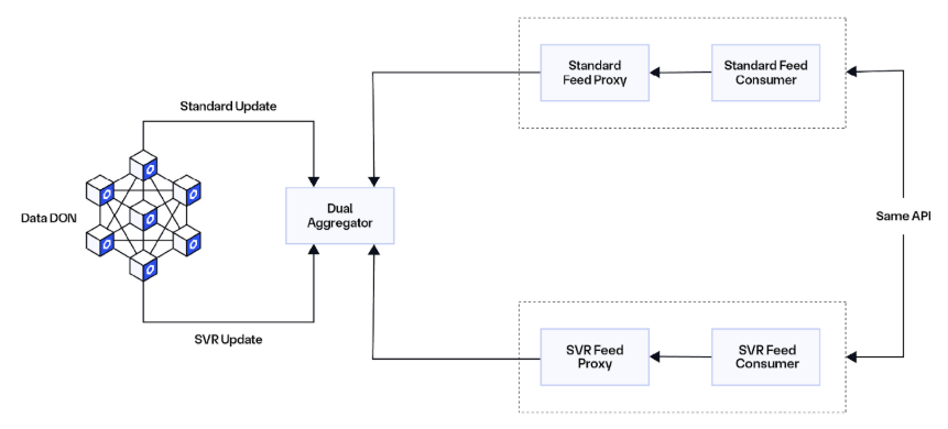 Additionally, SVR is built upon the same decentralized oracle network (DON) infrastructure that powers Chainlink Price Feeds, meaning it benefits from a time-tested architecture and introduces little to no additional trust assumptions for existing Price Feeds users.