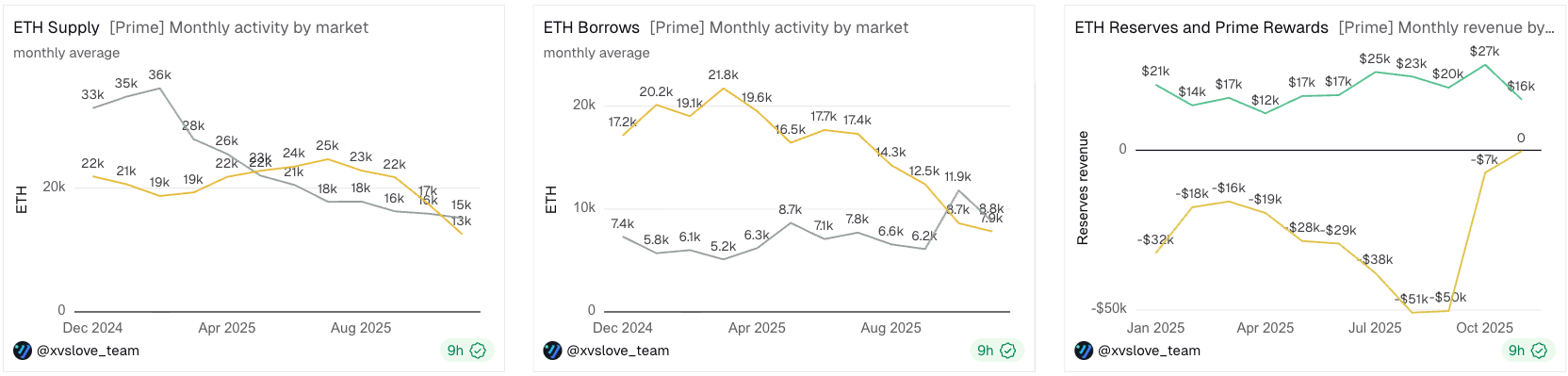 - After exiting Prime, former users significantly reduced their supply from $21 million to $10.8 million and their borrow volume from $12.15 million to $6.6 million over the course of November.