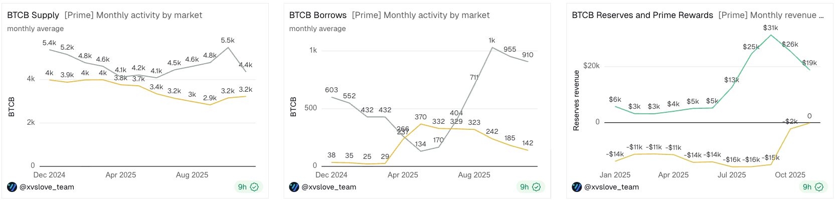- BTCB supply declined by 12.64%, while borrowing saw a modest decrease.